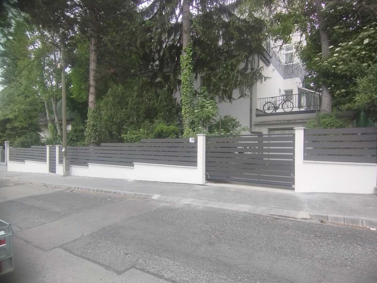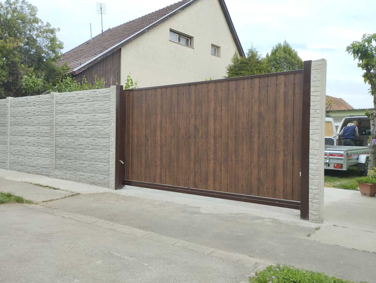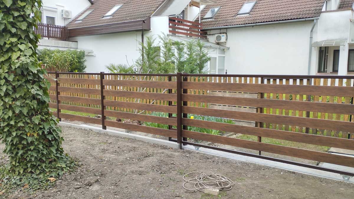 - Diófamintás fedéssel alumínium kapukkal meglévő kerítés elemek közé