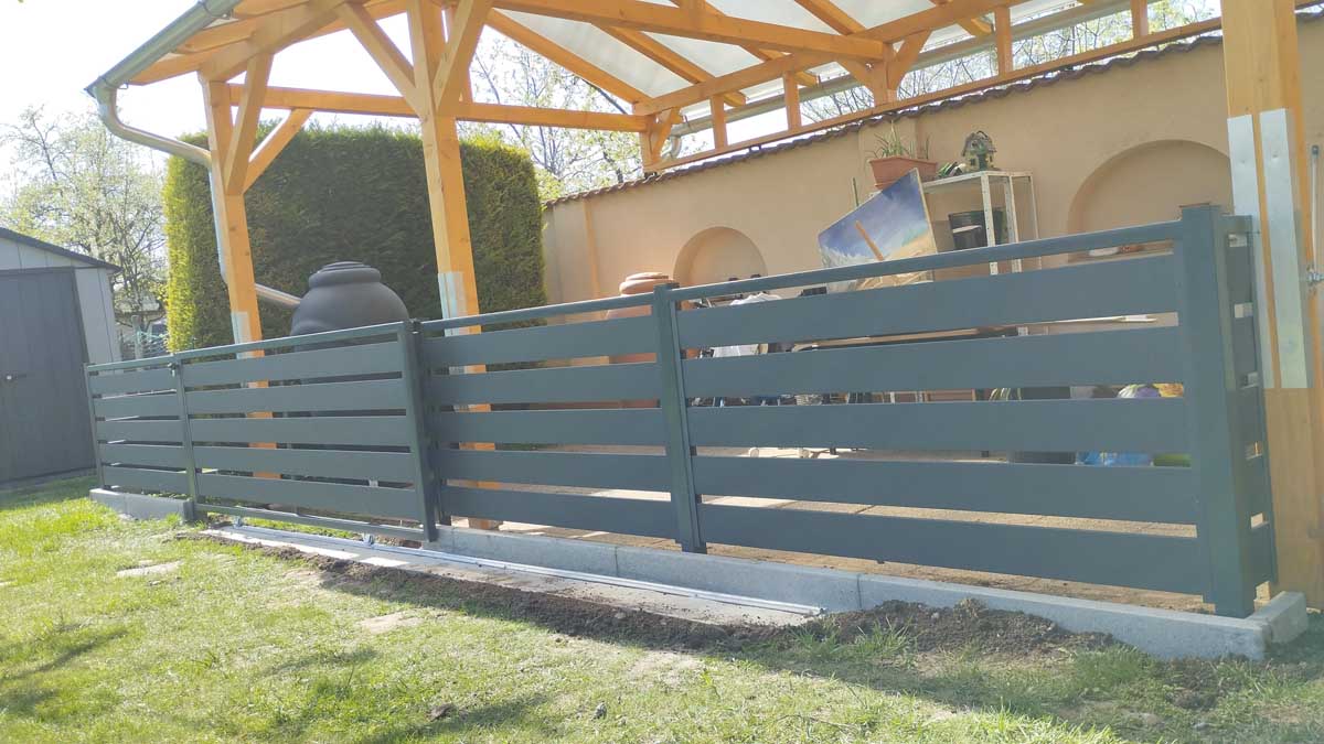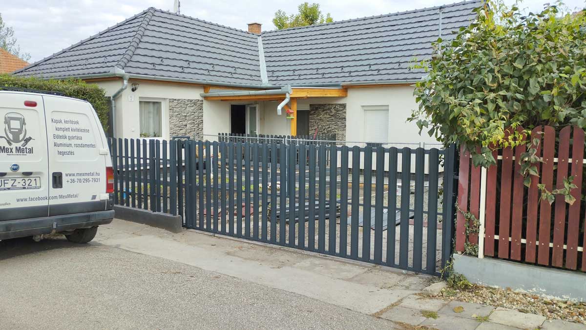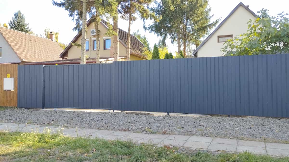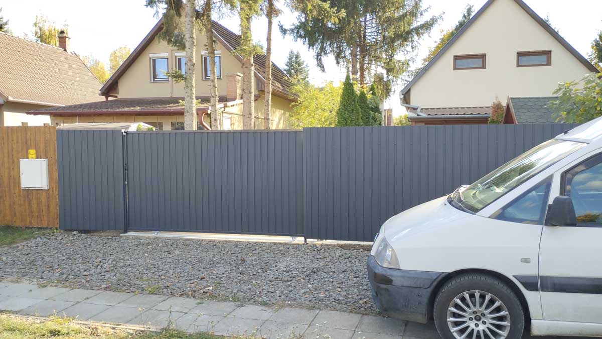 - Matt antracit T8-as trapéz lemezzel tolókapuval