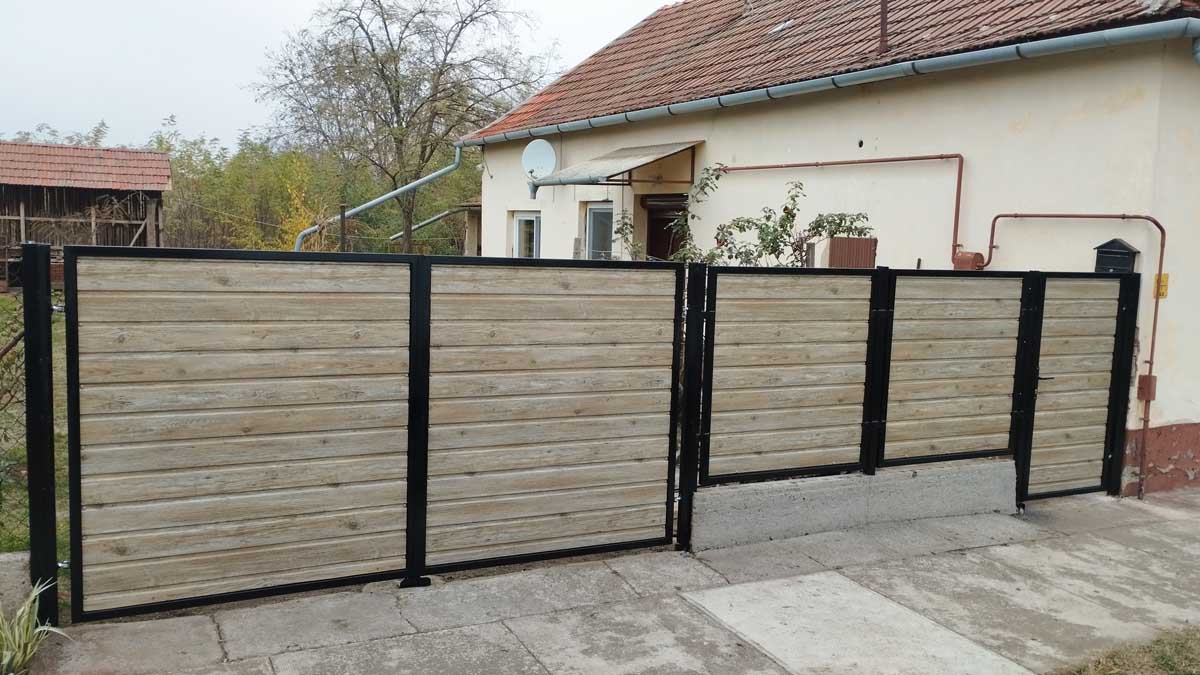 - WPC borítással antracit színben úszókapu és kiskapuval