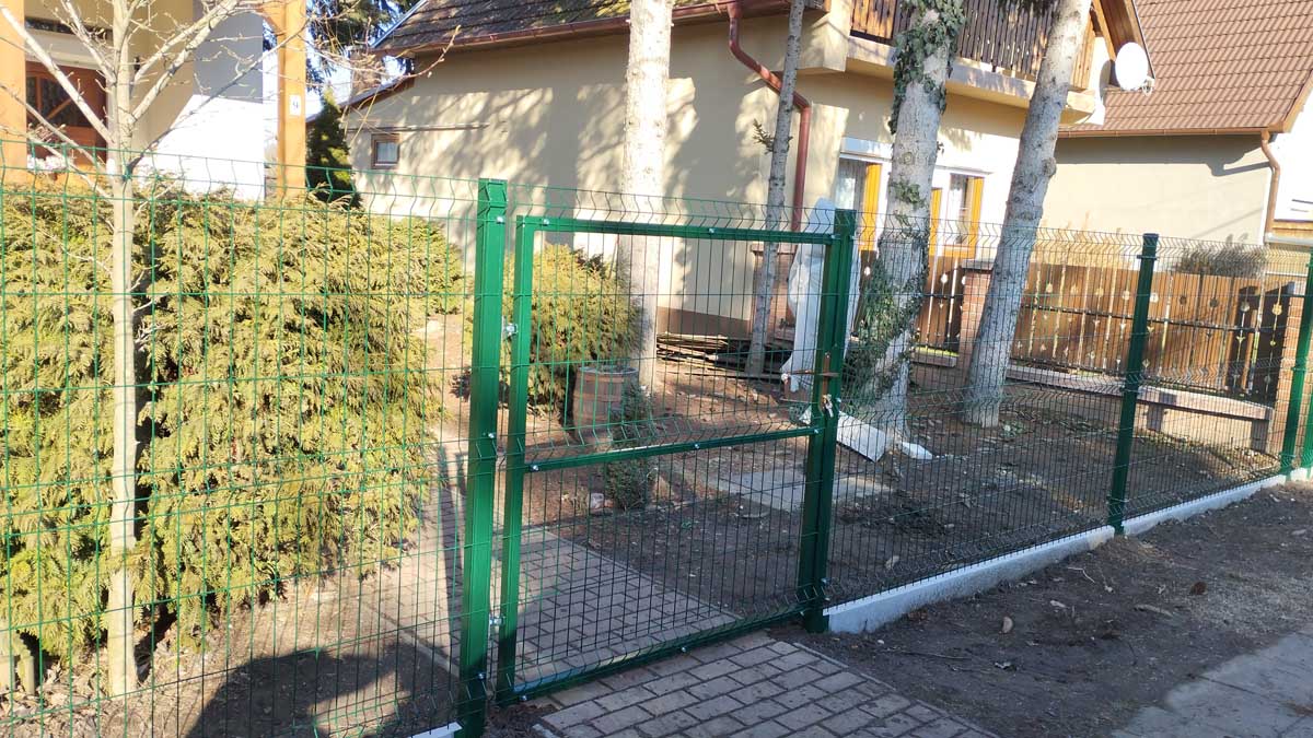 - 3D kerítés zöld színben beton lábazattal, kiskapuval