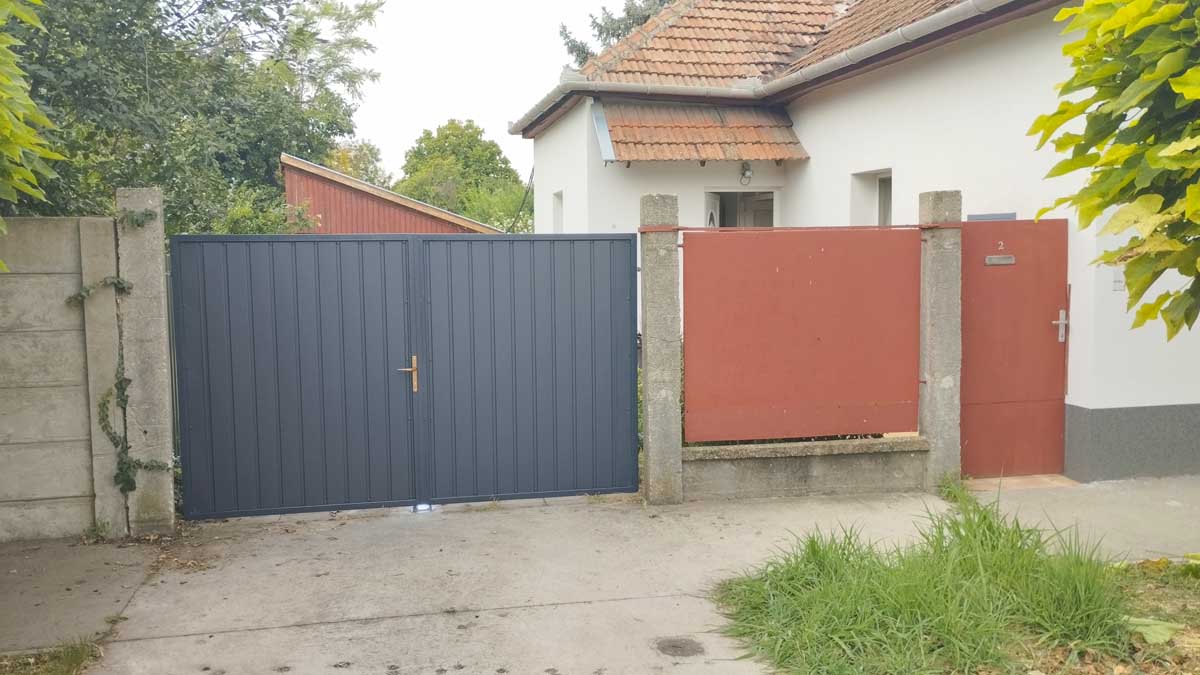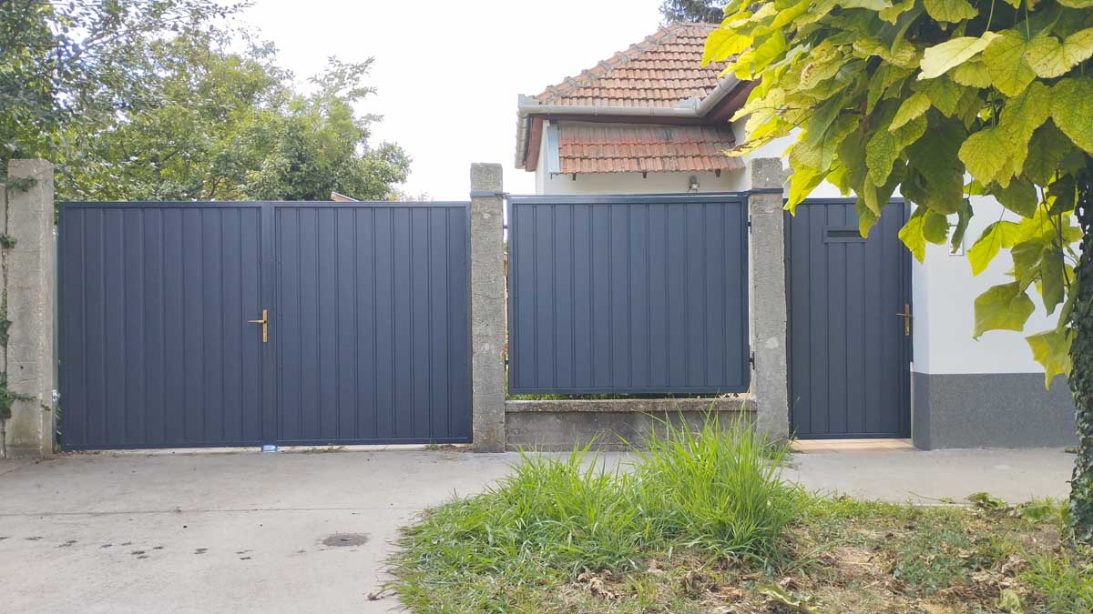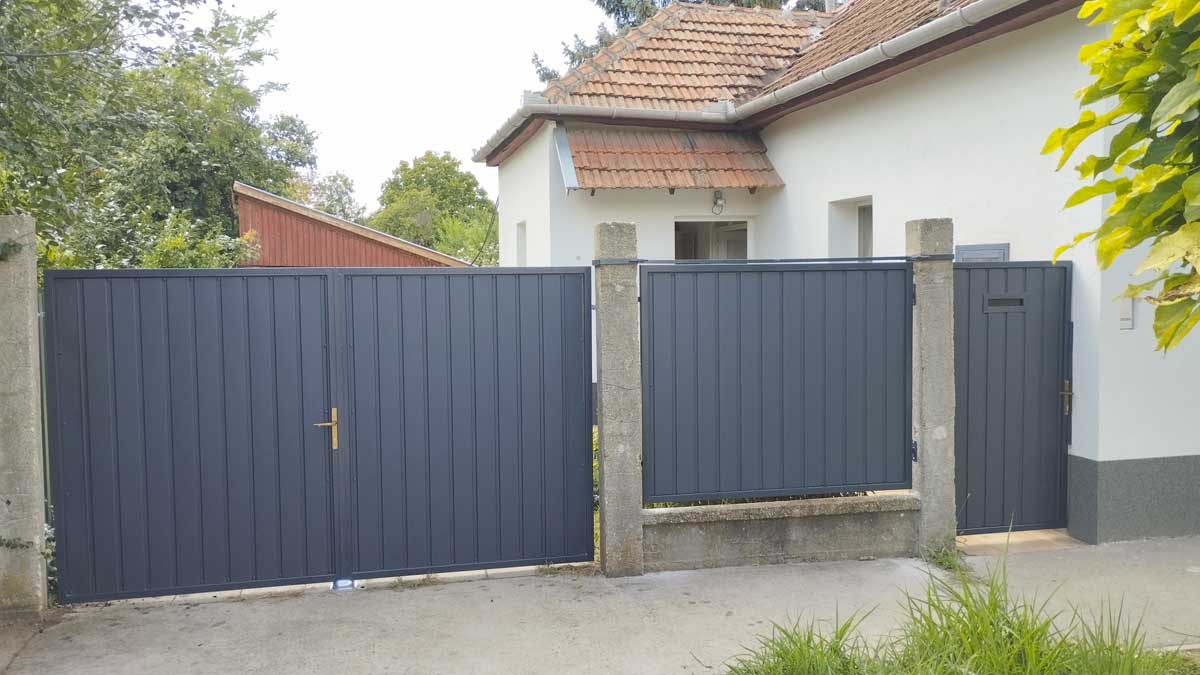 - Tolókapu, kiskapu T8-as antracit trapézlemez fendéssel