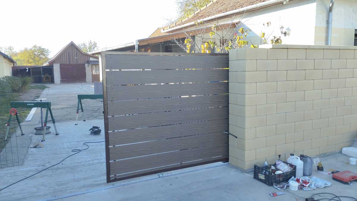 - WPC borítással tolókapu, kiskapu